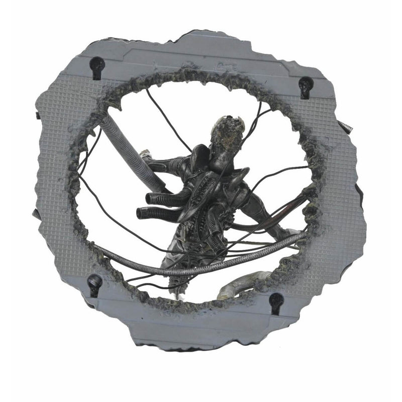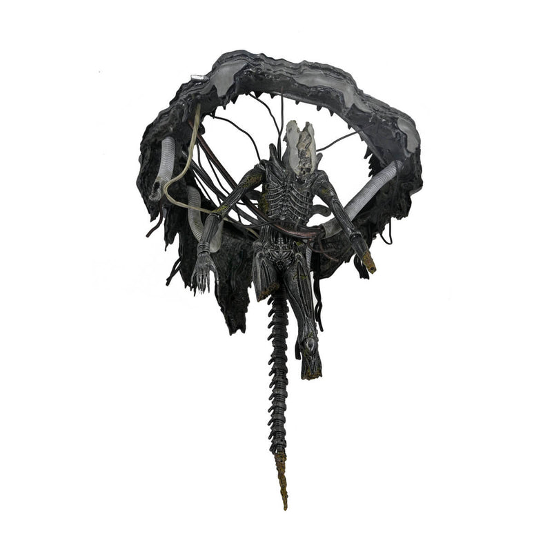 This deluxe figure from NECA features posable wires to hang the maimed Xenomorph and includes a display piece of the acid-burned lab ceiling designed for mounting on your wall or ceiling.