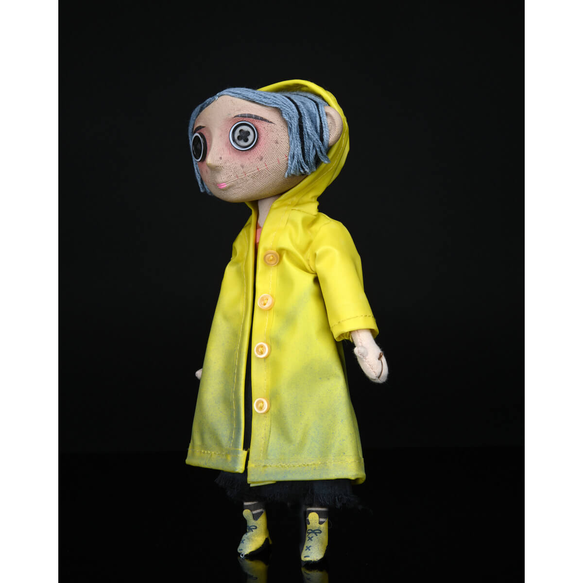 Step into the strange and whimsical world of Coraline! This intricately crafted replica of Coraline’s doll is inspired by the stop-motion film adaptation of Neil Gaiman’s eerie and enchanting novel. The doll captures every detail from the yarn hair and button eyes to the detachable yellow raincoat. Equipped with a hidden wire armature, you can pose her arms, legs, and even adjust her raincoat for endless display possibilities. Standing over 9 inches tall, it’s a perfect collectible for fans of all ages.
