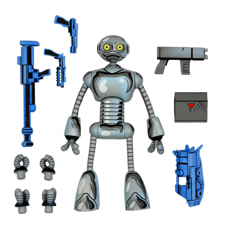 Prepare for a blast from the past, straight from the gritty pages of Kevin Eastman and Peter Laird's Mirage TMNT comics! Witness the tragic genesis of the Fugitoid, a hero forged in a bizarre twist of fate! Once the brilliant Professor Honeycutt of the distant planet D’Hoonib, his genius mind now resides within the cold, metallic shell of his android creation – a consequence of a catastrophic accident. Branded a fugitive by his own world's government, this unlikely champion, a veritable tank on two legs, has become the Turtles' most invaluable ally. Standing approximately 5.5 inches tall, the Fugitoid action figure is a treasure trove of accessories! Swap out his hands for expressive poses and arm him with a variety of weapons – a collection so versatile, your NECA Turtle figures will be clamoring to borrow them! And to top it off, this iconic figure comes encased in special comic-book tribute window box packaging, a nostalgic nod to the legendary source material. Don't miss your chance to own a piece of TMNT history!