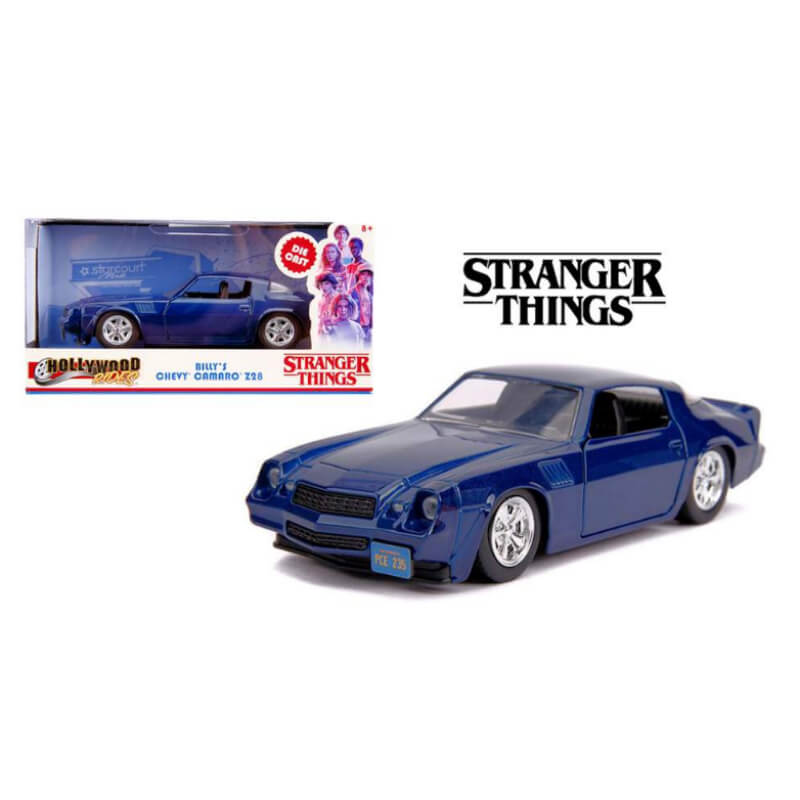 Relive the glory days of Hawkins with this stunning Jada Toys die-cast replica of Billy's iconic Chevy Camaro Z28 from Stranger Things. This 1:32 scale Hollywood Rides collectible boasts meticulous detailing and authentic styling that captures the essence of the show's most unforgettable muscle car. Measuring approximately 5 inches long, it's the perfect addition for devoted fans and serious collectors who want to turbocharge their display. Shift into gear and make this legendary ride yours!