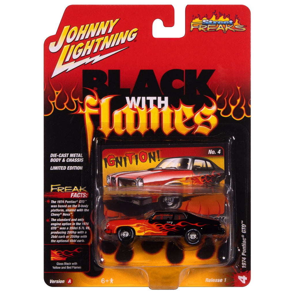 - 1974 Pontiac GTO (Black w/Flames) (Black/Red, Orange & Yellow)