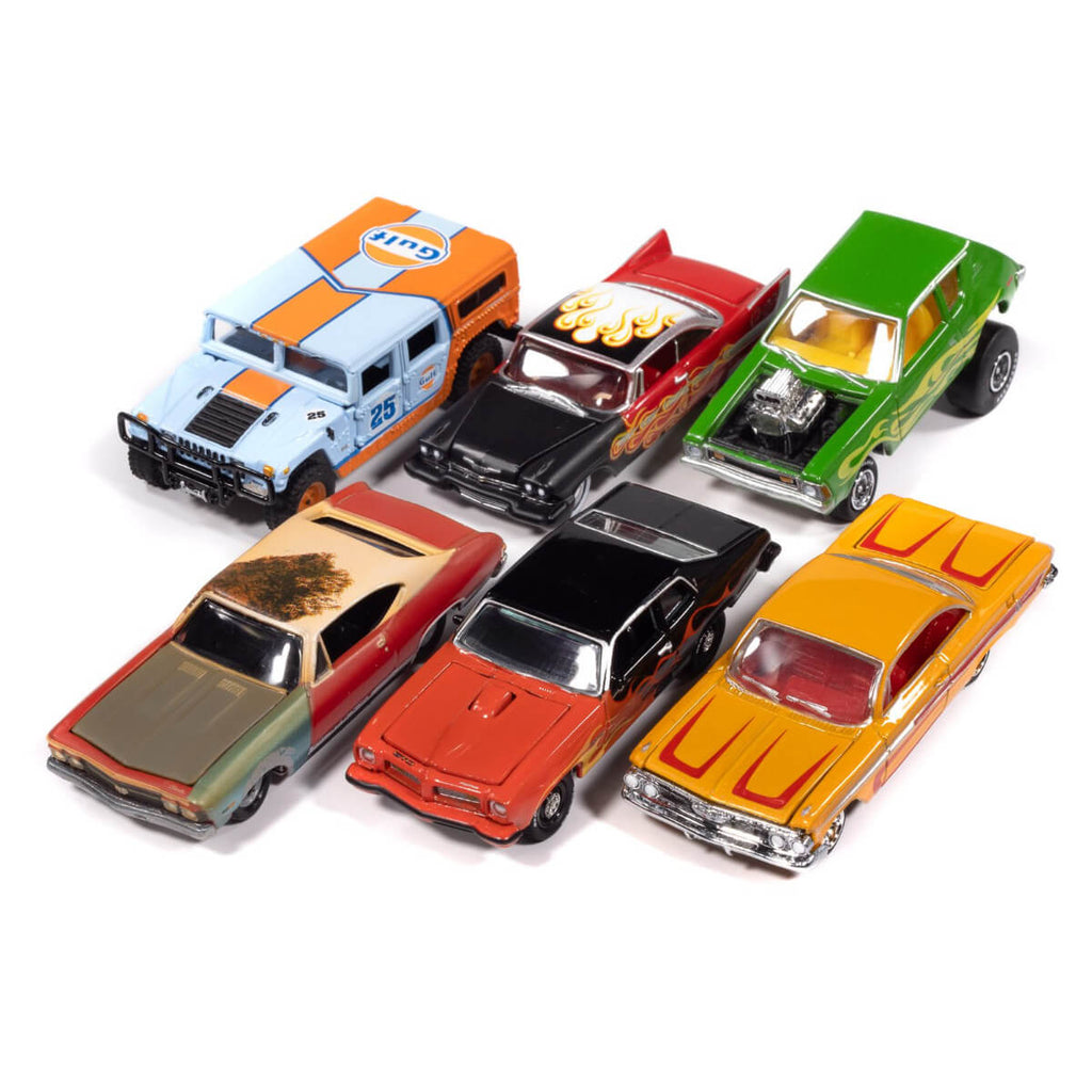 Boost your collection with the Johnny Lightning 2025 Street Freaks (Release 1A) 6-Piece Collector's Bundle! This limited edition set comes with six meticulously detailed 1:64 scale diecast cars, showcasing bold and iconic designs that every collector will appreciate. Take your collection to the next level with these stunning cars—just be ready, they might ignite a whole new collecting craze!