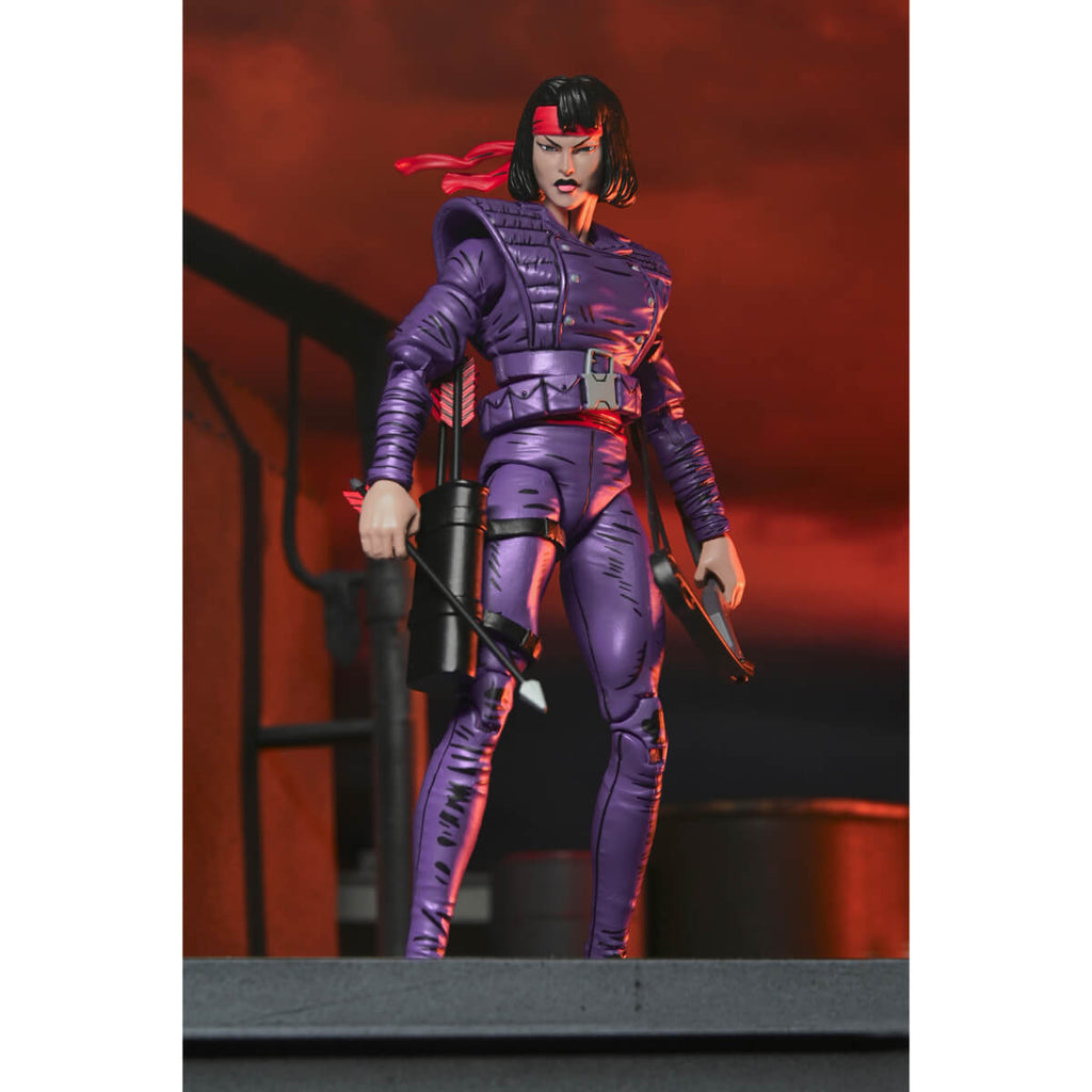 Based on her cover appearance in the “City at War” storyline in Eastman & Laird’s Teenage Mutant Ninja Turtles comic books from Mirage Studios! Karai, the new leader of the Foot Clan, is both a fearsome foe and uneasy ally to the Turtles. Featuring an authentic, stylized comic book deco, this Karai Mercenary action figure is ready to join your TMNT collection. The 7-inch scale NECA figure includes interchangeable hands, bow and arrow, and quiver. Comes in collector-friendly window box packaging with artwork by Kevin Eastman.