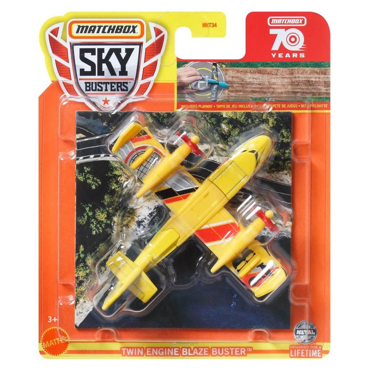 Aircraft enthusiasts will love collecting these highly detailed Matchbox Sky Busters 70th Anniversary replica flying vehicles. Collect all of the commercial, military, rescue, and custom 1:64 scale designs, each accompanied by a foldout playmat! Ages 3 and up.