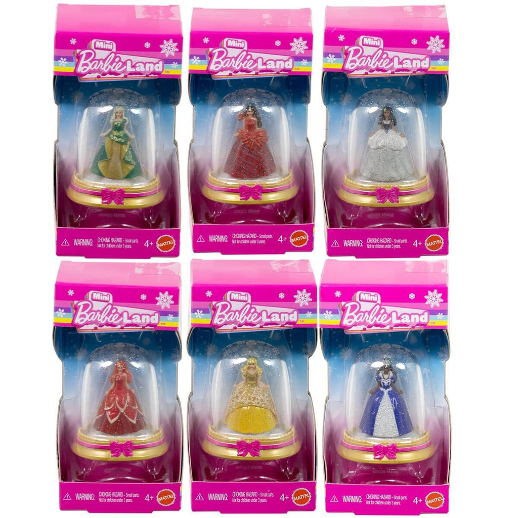 Step into a magical miniature world with Mini BarbieLand holiday dolls! Each adorable collectible features Barbie's iconic holiday style, nestled in a charming snow globe and mounted on a heart-shaped base that fits into Mini BarbieLand playsets (sold separately). Perfect for ages 4+, these mini dolls are designed for imaginative play or display. Start your collection today and create an enchanting mini universe—collect them all to build your dream world! Measuring 1.5 inches