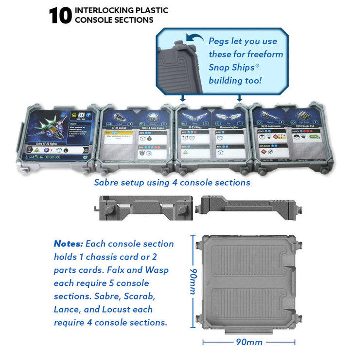 Note: each console section holds 1 chassis card or 2 parts cards. Falx and Wasp each require 5 console sections, while Sabre, Scarab, Lance, and Locust each require 4.