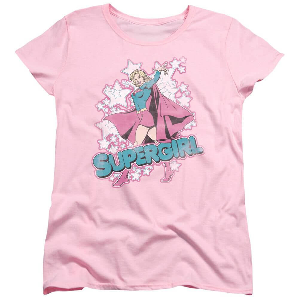This DC Comics Supergirl ladies short sleeve t-shirt in pink features a classic Pop design. A cute edition to any outfit! Made with 100 % cotton.