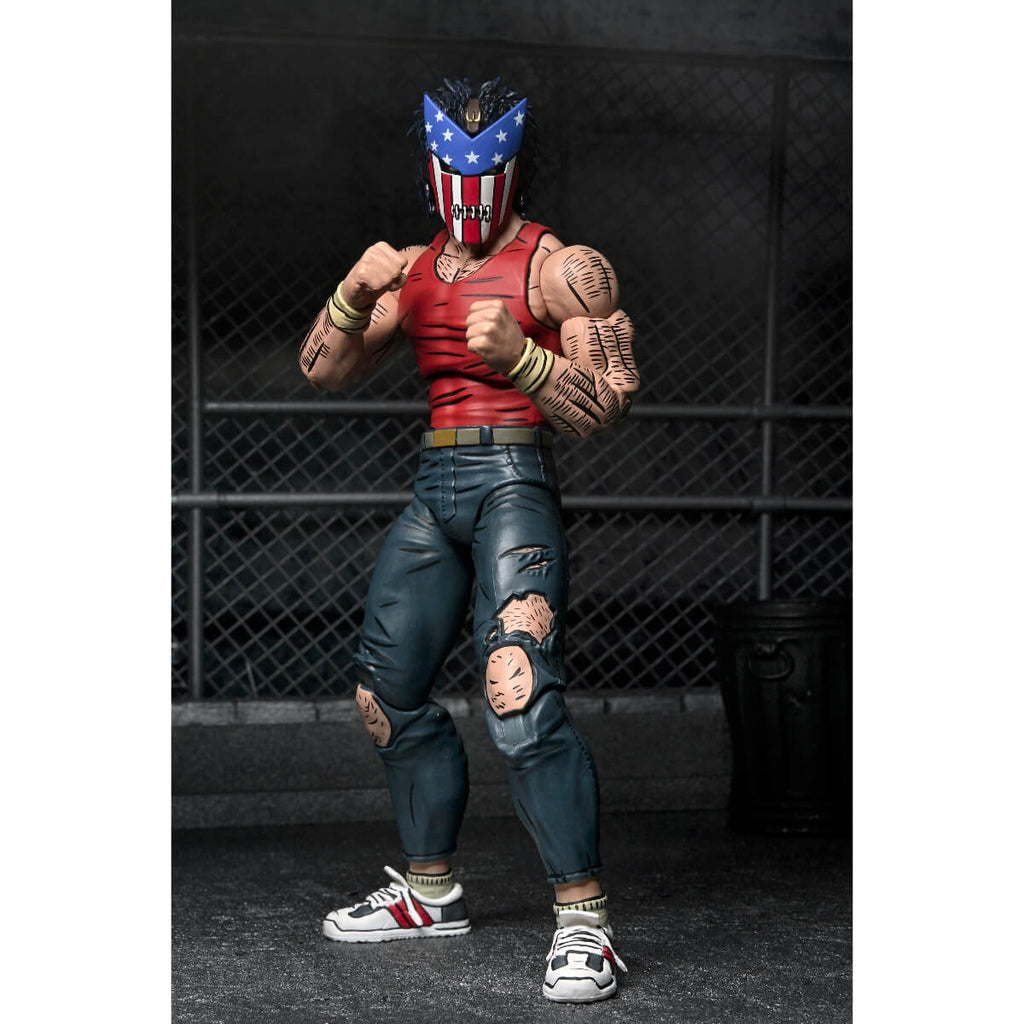 Step into the action with this Ultimate 7-inch Casey Jones figure, straight from Eastman & Laird’s Teenage Mutant Ninja Turtles comic books! Inspired by the Bodycount storyline, this figure features a fresh new sculpt and comes packed with cool accessories like interchangeable hands, a hockey stick, gloves, a chainsaw, and a bottle. Perfect for collectors, it arrives in packaging showcasing original Kevin Eastman artwork—ready to join your TMNT adventures with a playful punch!